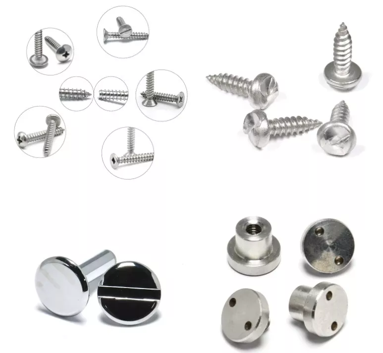 शिकागो स्क्रू में बैग, साइनेज और सजावटी कनेक्शन के लिए दो तरफा अलग करने योग्य डिज़ाइन की सुविधा है। वे आसानी से जुदा करने के साथ साफ-सुथरी उपस्थिति जोड़ते हैं, फर्नीचर सहायक उपकरण, विज्ञापन संकेत और सजावटी पैनलों में व्यापक रूप से उपयोग किए जाते हैं।